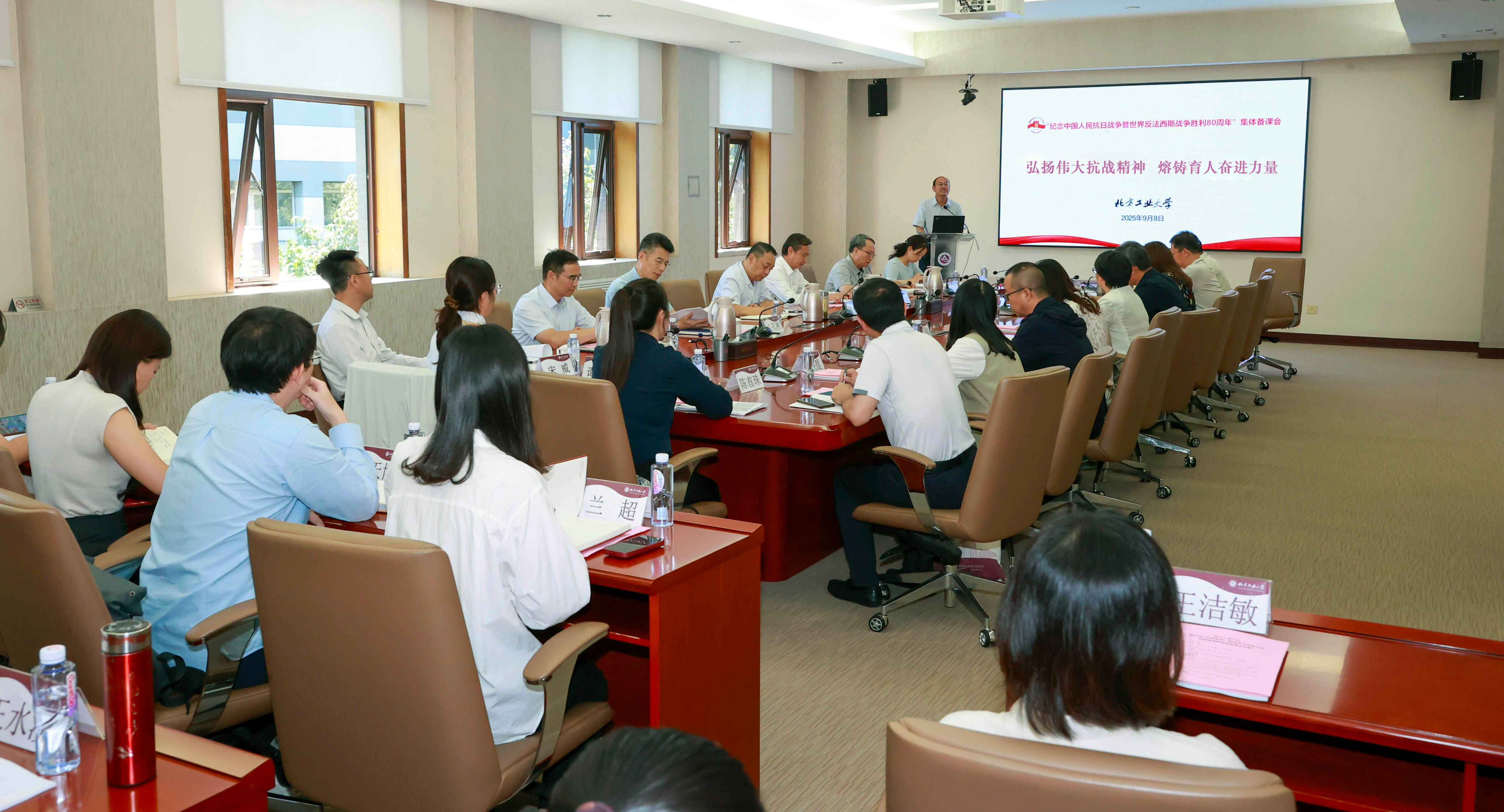 为纪念中国人民抗日战争暨世界反法西斯战争胜利80周年,深入学习贯彻习近平总书记关于“弘扬伟大抗战精神”的重要论述,将伟大抗战精神有效融入思政课教育教学,9月8日下午,学校组织召开思政课教师集体备课会。党委书记刘军,党委副书记姜孔桥,党委常委、副校长陈家庆参加会议。备课会由马克思主义学院副院长王润稼主持。刘军指出,弘扬伟大抗战精神,学习贯彻好习近平总书记重要讲话精神,是学校本学期的重点任务,学习成果...