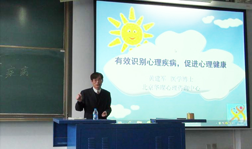 4月2日下午,心理健康教育暨咨询中心举办心理健康知识讲座,邀请临床心理学博士黄建军来伟德官网作了《有效识别心理疾病,促进心理健康》专题报告,各年级心理委员聆听了讲座。