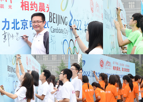 6月23日是国际奥林匹克日,校团委在小操场举办了“相约晨光,助力2022——BV伟德官方网站助力北京申办2022年冬奥会签名晨跑”活动。