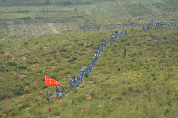 7月14日上午,2014级学生军训团按照军训大纲的要求组织了野外拉练。