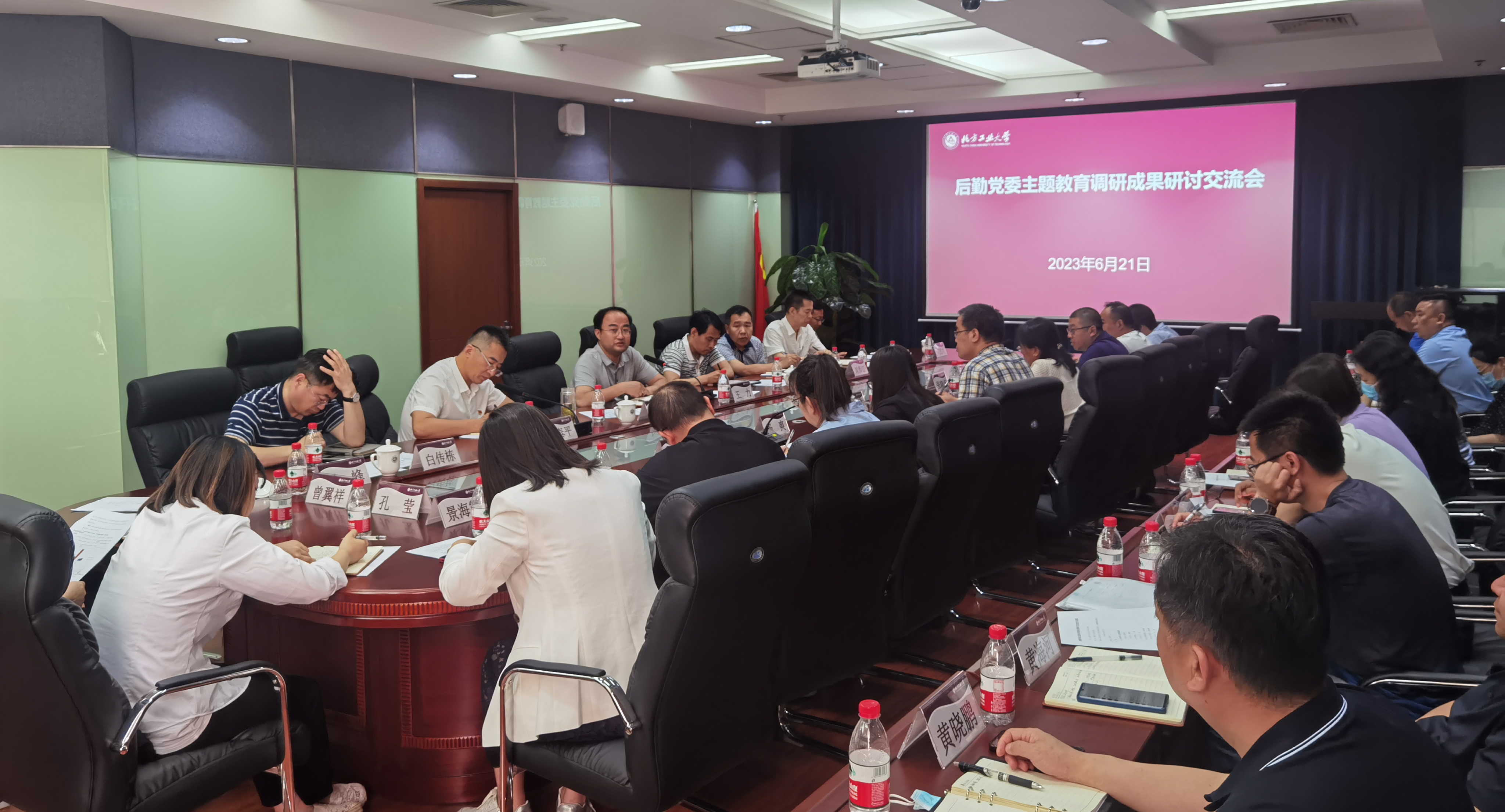 为深入开展学习贯彻习近平新时代中国特色社会主义思想主题教育落细落实,6月21日下午,后勤党委在国教中心201会议室召开主题教育调研成果研讨交流会。校党委常委、副校长王力出席会议。学校安全稳定工作部(处)、资产与实验室安全管理处、网信中心负责人和后勤系统副经理以上干部、赴北京林业大学“跟班式”调研学习成员共32人参加会议。后勤党委书记郑泰平主持会议。会上,综合办、计划管理、安全与质量管理、师生服务管理、...