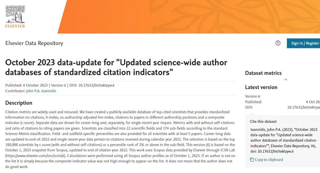 10月4日,美国斯坦福大学和爱思唯尔数据库(ElsevierDataRepository)发布《2023年度全球前2%顶尖科学家榜单》(StanfordUniversityTop2ScientistsList2023),伟德官网校长张立峰教授,电气与控制工程学院李建林教授、杨海涛教授入选“终身科学影响力”榜单。该榜单是斯坦福大学JohnP.A.Ioannidis教授团队与Elsevier与合作的项目成果,发布在Elsevier旗下的MendeleyData网站上。榜单采用论文引用数、h指数、合著调整后的hm指数等6种...