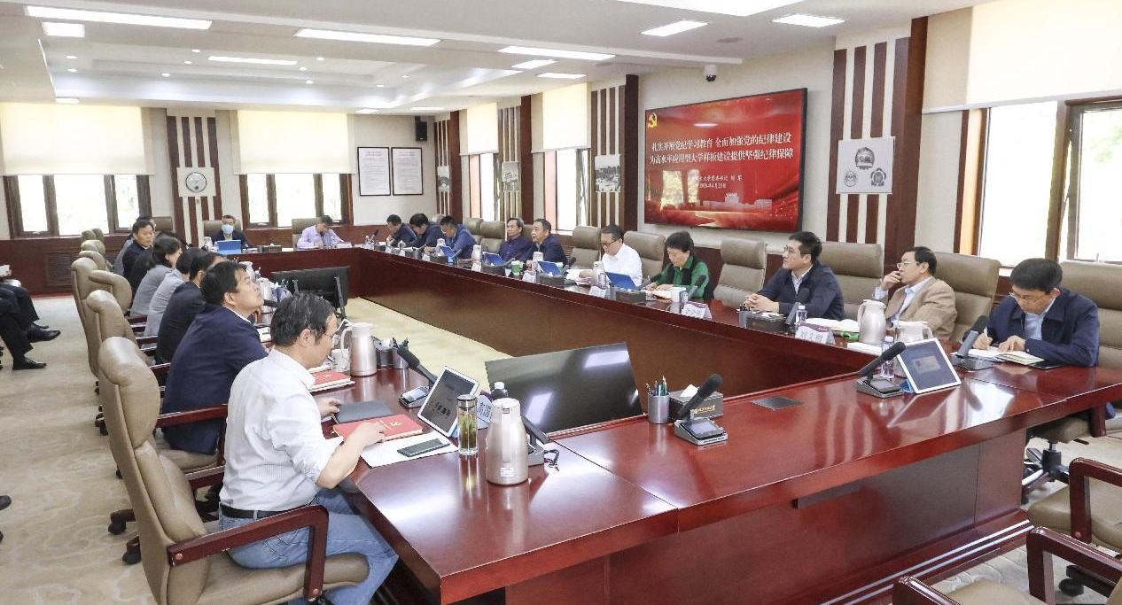 按照党纪学习教育工作安排,4月23日下午,学校党委组织党纪学习教育读书班暨党委理论学习中心组学习(扩大)会议,认真学习习近平总书记关于加强党的纪律建设的重要论述精神,原原本本、逐章逐条学习《中国共产党纪律处分条例》(以下简称《条例》)。校党委书记刘军讲授党纪学习教育专题党课,校党委理论学习中心组全体成员、党委委员、二级单位党组织书记参加学习。刘军以“扎实开展党纪学习教育,全面加强党的纪律建设,为高...