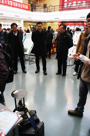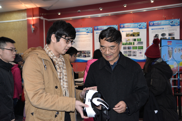 11月27日下午,郑文堂校长在教务处处长王景中的陪同下来到伟德官网“2015年实验室开放暨创新创业展”现场进行调研指导。
