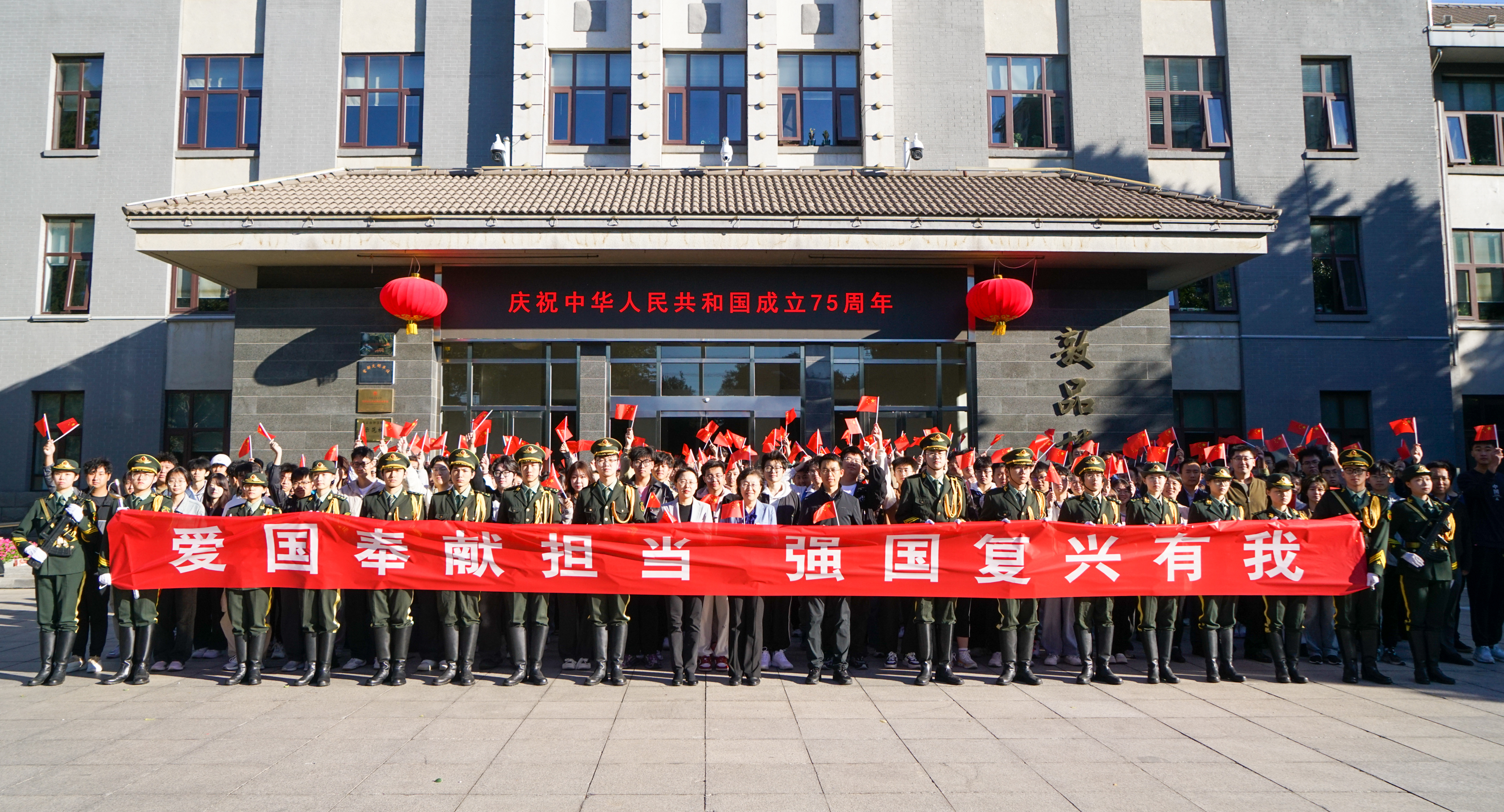 10月1日清晨,校党委常委、副校长栗苹,学工部、校团委负责人和各学院党委副书记、团委书记,以及200余名学生代表齐聚敦品楼前广场,隆重举行“爱国奉献当担强国复兴有我”主题升国旗仪式,共同庆祝中华人民共和国成立75周年。活动由校团委书记杨超主持。升旗仪式上,国旗班队员们迈着坚定有力的步伐,护送鲜艳的五星红旗至升旗台。伴随着雄壮的国歌响起,升旗手振臂扬旗,全体师生深情注目着五星红旗冉冉升起,浓浓的爱国情在...