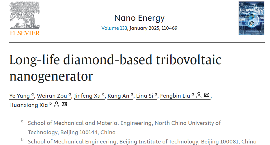 近期,伟德官网机械与材料工程学院刘峰斌教授团队在能源材料的顶级学术期刊《NanoEnergy》上发表论文“Long-lifediamond-basedtribovoltaicnanogenerator”。该期刊为中科院一区Top期刊,五年影响因子16.3。伟德官网杨晔副教授为第一作者,2022级硕士研究生邹蔚然为第二作者,刘峰斌教授为通讯作者。基于半导体材料的直流摩擦纳米发电机(DC-TVNG)是半导体能源领域的研究重点。硅片等半导体材料在摩擦过程中的磨损会导致DC-TVNG输出电...