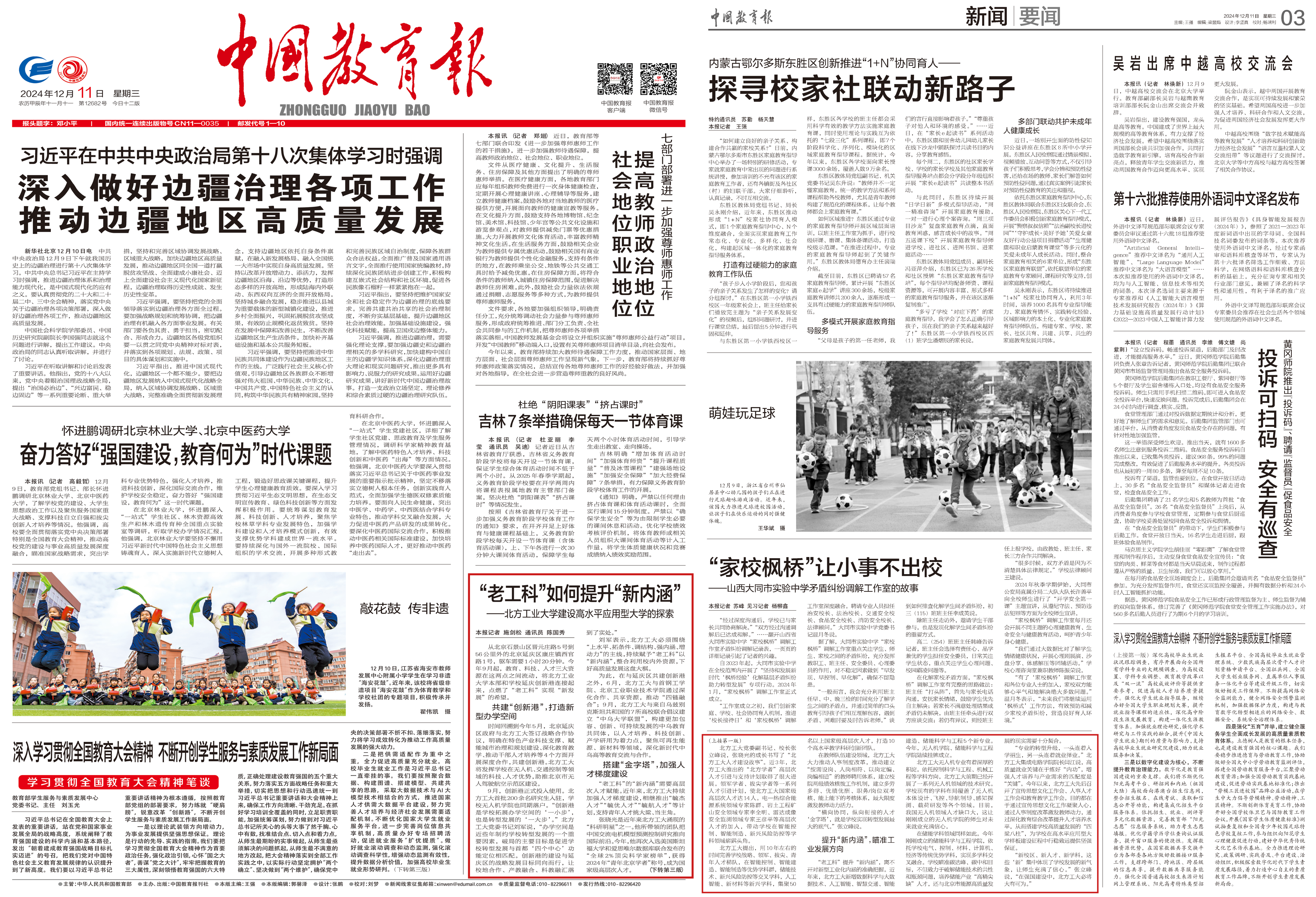 2024年12月11日,《中国教育报》在头版和第三版以《“老工科”如何提升“新内涵”——BV伟德官方网站建设高水平应用型大学的探索》为题,报道了伟德官网顺应高等教育改革潮流,紧扣“上水平、拓条件、调结构、强内涵、增动力”主线,推动传统工科院校转型升级,实现新校区、新人才、新学科、新博士点“四新”发展的生动实践。文章介绍了学校聚力打造新型办学空间、加强人才梯度建设、提升学科专业建设水平的典型做法和成效,是传统“...