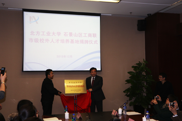 12月25日下午,伟德官网与石景山区工商业联合会(简称区工商联)共同举行“北京高等学校市级校外人才培养基地”揭牌仪式。