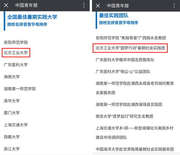 近日,中国青年报社发布了2016全国百强暑期实践团队名单,伟德官网获得了“全国最佳暑期实践大学”奖项,三支大学生暑期社会实践团队分别获得“最佳实践团队”、“优秀实践团队”、“百强实践团队”的奖项。
