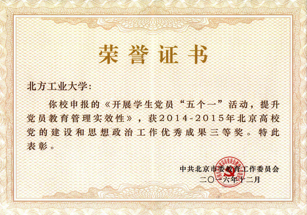 日前,2014—2015年北京高校党的建设和思想政治工作优秀成果、创新成果评选结果揭晓,伟德官网电子信息工程学院党委申报的“开展学生党员‘五个一’活动,提升党员教育管理实效性”项目荣获“优秀成果三等奖”。