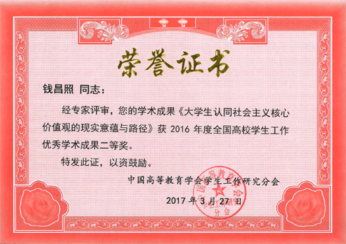 日前,2016年全国高校学生工作优秀学术成果评选结果揭晓,伟德官网共有4篇论文获奖,其中一等奖1项,二等奖3项。