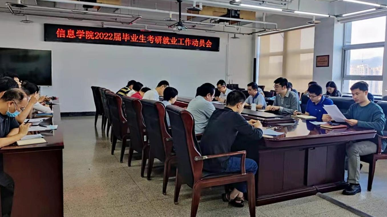 为推动学院人才培养质量再上新水平,扎实做好毕业生考研、就业指导工作,信息学院于9月27日召开2022届毕业生考研就业工作动员会,学院领导班子、各系主任、2018级班导师及专职辅导员参加,学院党委副书记赵帅主持。会议全面分析了2021届毕业生考研及就业工作数据,围绕工作难点和痛点,进行工作复盘和梳理。马礼院长指出,人才培养是学院发展的永恒主题,是“十四五”规划要点的重点,围绕人才培养出口大局,全力做好毕业生考研...