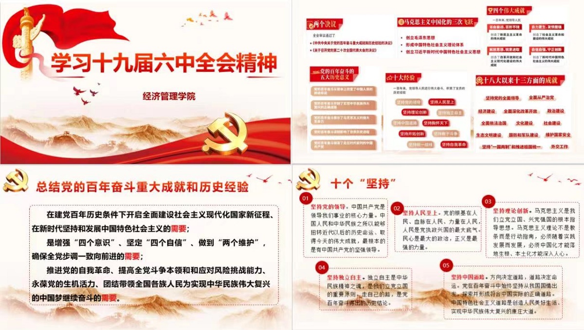 为深入学习贯彻党的十九届六中全会精神和习近平新时代中国特色社会主义思想,加强党支部的政治建设和组织建设,经济管理学院各基层党支部于3月3日至3月6日开展主题为“新学期、新面貌、新计划、新征程”的党的十九届六中全会专题学习活动,学院十五个党支部及四百多名党员展开热烈的学习和讨论。此次学习活动采取线上线下相结合的方式进行,各支部通过学习《中共中央关于党的百年奋斗重大成就和历史经验的决议》和关于《中共中央关...