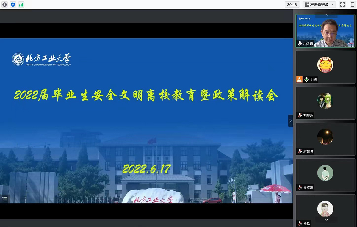 6月17日,土木学院召开2022届学生线上安全文明离校教育会。学院2022届全体本科生、研究生毕业生参加会议。学院副书记冯少杰代表学院向2022届毕业生全体毕业生送上了诚挚的祝福,详细解读了毕业离校政策以及离校手续办理的各项注意事项,强调了要安全、文明、有序离校,并提出3点要求。爱护公物,文明离校。爱护母校一草一木和公共设施,离校前主动打扫宿舍卫生,确保宿舍原有设施完好无损,为学弟学妹做好榜样;勇于担当,诚信...