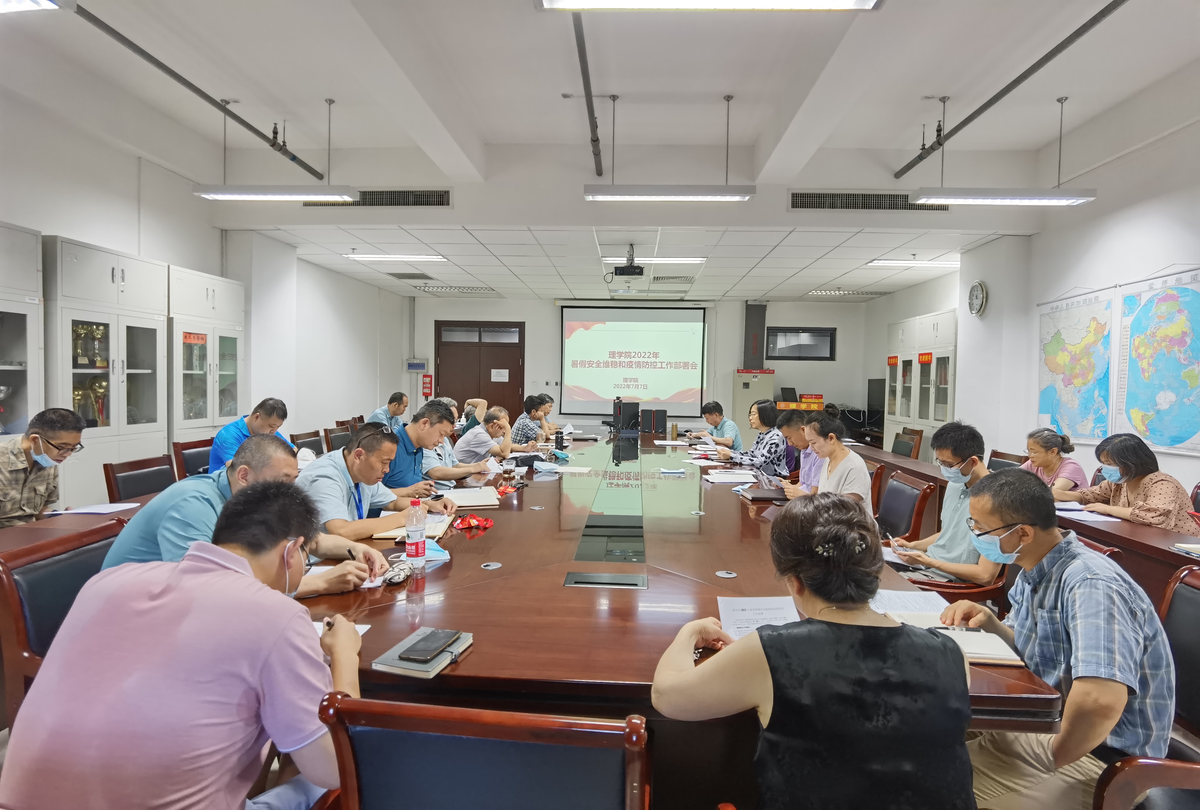 为落实学校关于暑假安全稳定工作的通知精神,7月7日上午,理学院召开暑假安全稳定和疫情防控工作部署会。学院班子成员、系主任、责任教授、支部书记、办公室全体老师参加会议。会议由学院党委书记龚维华主持。龚维华书记就暑假期间重点工作做了具体部署。一是严格落实北京市和学校疫情防控政策,进一步落实常态化疫情防控工作要求和“四方责任”,要求全体师生严格落实疫情防控主体责任,保持电话畅通,确保疫情流调快、严、准...