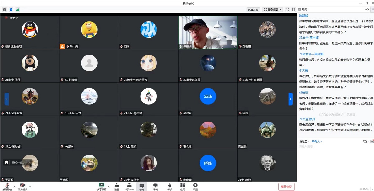 11月19日上午,经济管理学院通过腾讯会议在线举办了“创新创业导航”系列讲座第二讲。投资人兼中国“互联网+”大学生创新创业大赛历届评审专家谭茗洲先生以“创新创业四要素”为题,与伟德官网80余名师生在线交流。讲座由经济管理学院创新创业基地刘冰副教授主持。谭茗洲从想法、产品、团队、执行四个维度对创新创业进行了解读,并从投资人视角分析每个维度下的具体做法,深化了学生对创新创业的理解。讲座结束后,老师和同学们提问...