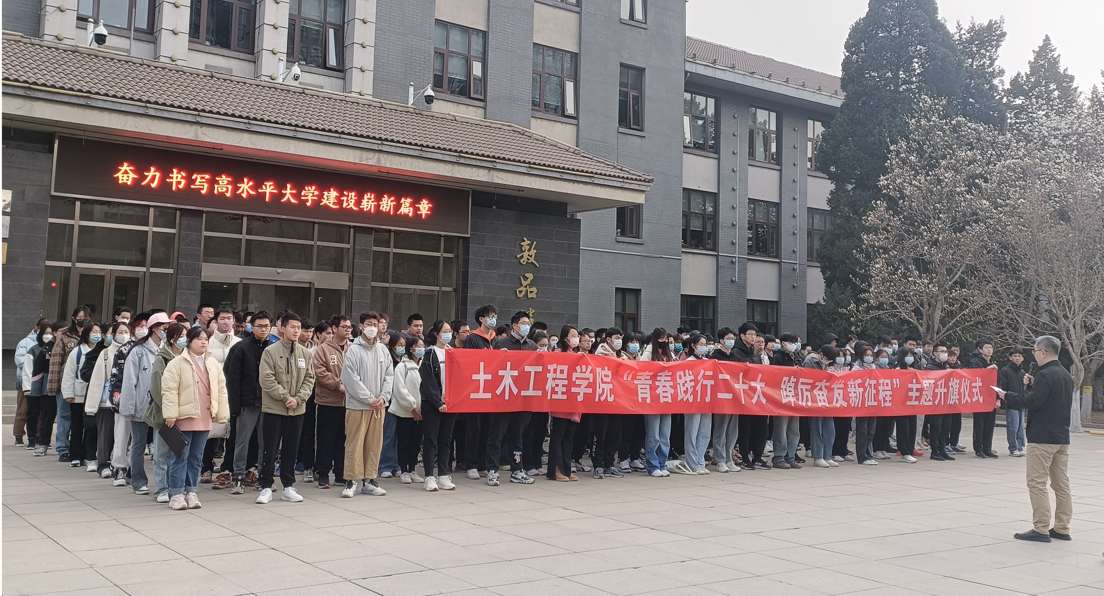 为激励土木学子爱党爱国的热情,勇担新时代的青年责任。近日,土木工程学院在敦品楼广场隆重举行了“青春践行二十大,踔厉奋发新征程”主题升旗仪式。学院党委副书记冯少杰、团委书记金磊和2022级全体学生参加了升旗仪式。清晨阳光初现,学生以饱满的精神状态整齐地站在国旗下,五星红旗在国旗班的护卫下伴随着雄壮的《义勇军进行曲》冉冉升起。国歌和国旗是国家的象征、国家的标志,庄严的升旗仪式激发了同学们的爱党爱国热情。202...