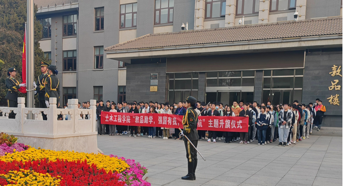 为深入推进2023级新生引航工程,强化思想引领,厚植爱国情怀,讲好励志故事,10月23日清晨,土木工程学院举行主题升旗仪式,学院党委书记张少波、副书记冯少杰、辅导员孙永君及2023级全体新生参加了升旗仪式。同学们迎着朝阳,以整齐的队列和饱满的精神状态展现了青春学子的蓬勃朝气。鲜艳的五星红旗伴随着国歌冉冉升起,同学们面向国旗肃立敬礼,高唱国歌,表达着土木学子对伟大祖国的无限热爱和美好祝愿。青春逢盛世,奋斗正...