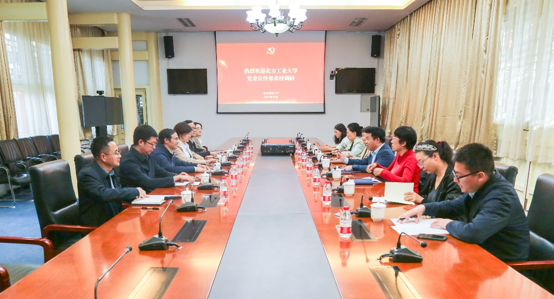 10月25日,党委宣传部赴北京建筑大学调研交流,深入学习贯彻习近平文化思想和全国宣传思想文化工作会议精神,破解学校宣传文化思想工作难题,为高水平应用型大学建设营造良好的宣传文化氛围。北京建筑大学党委常委、宣传部部长魏楚元,文化发展研究院/人文学院党总支书记孙冬梅热情接待,双方进行了座谈交流。座谈会上,魏楚元详细介绍了北京建筑大学宣传文化工作的主要思路和经验做法、理论教育和意识形态的工作体系、新闻宣传和...