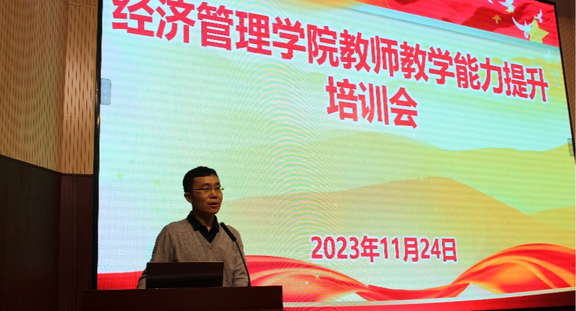 11月24日下午,经济管理学院组织召开“经济管理学院教师教学能力提升培训会,邀请了第五届全国高校混合式教学设计创新大赛一等奖获得者、信息学院王若宾老师,北京市第十三届青年教师教学基本功大赛文科组一等奖获得者、经济管理学院王莉娜老师分别做了专题报告,就教学创新大赛、青年教师教学基本功大赛参赛体验、感受与经验等进行了精彩分享。经济管理学院党委书记谢朝阳代表学院对举办本次培训会的背景和意义作了说明,对两...