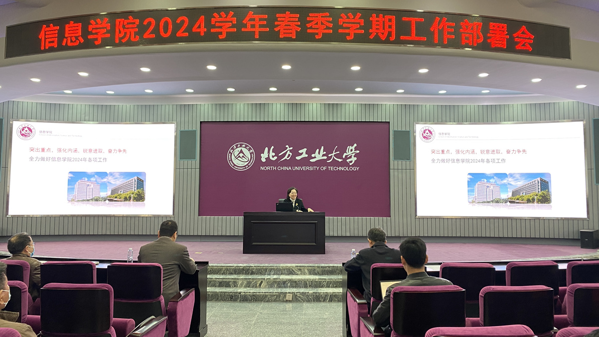 为全面贯彻落实新时代党的建设总要求,围绕学校“上水平,拓条件,调结构,强内涵,增动力”主线,进一步明确学院年度工作目标任务,切实提升治理效能,推进党建与中心工作有机融合,4月1日上午,信息学院在广学楼报告厅举行2024年春季学期全体教职工大会。学校党委常委、副校长栗苹出席会议并讲话。会议由学院党委书记王伟宾主持。栗苹在讲话中表示,2024年是信息学院发展的关键一年,学校围绕人工智能、集成电路等新一代信息...