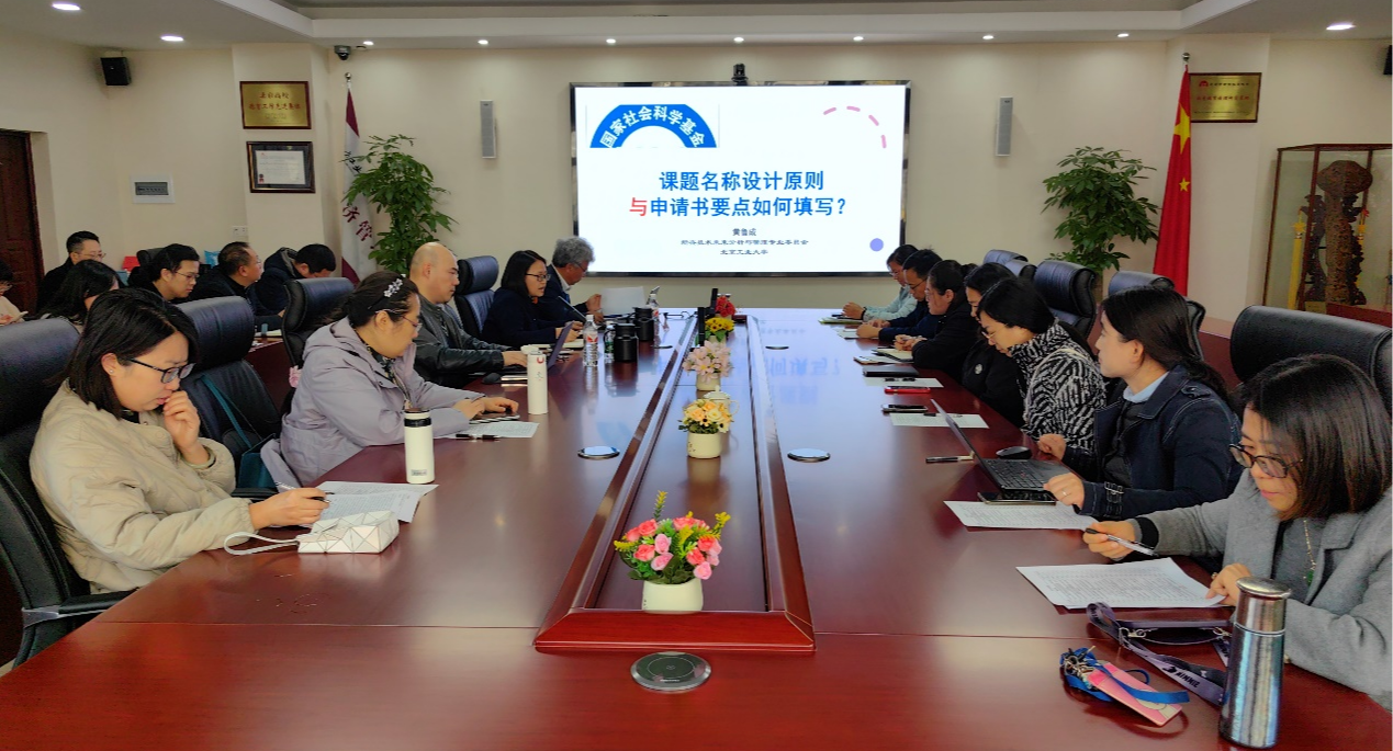 为切实做好学院2025年度社科基金项目申报工作,推动申报课题质量提升,11月6日下午,经济管理学院在励学楼201会议室召开励学沙龙第八期学习交流活动。北京工业大学经济与管理学院博士生导师、国家哲学社会科学学科规划评审组专家黄鲁成教授应邀为老师们做社科基金课题选题的指导。学院30余位教师参加此次励学沙龙,活动由蒋贵凰副院长主持。黄鲁成教授首先做了以《课题名称设计原则与申请书要点如何填写》为主题的经验分享报告...