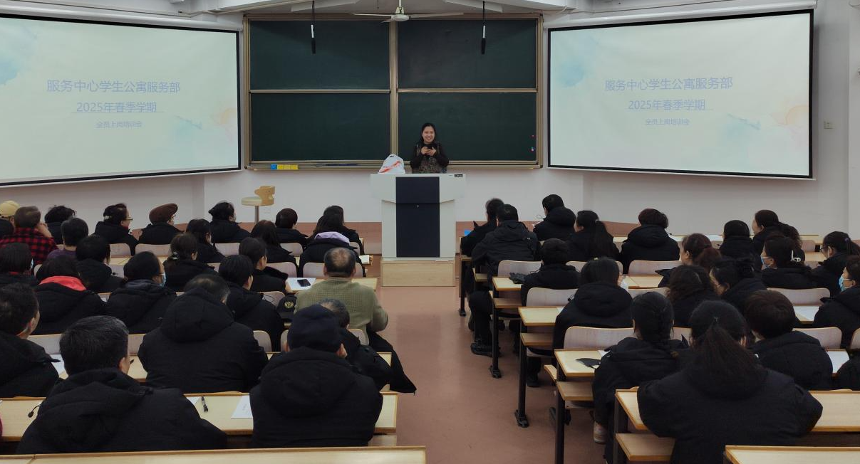 为进一步提升服务质量与管理水平,学生公寓服务部于2月18日,在广学楼西301教室组织了一场面向全体员工的上岗培训,本次培训由学生公寓服务部张雪主讲,参会人员共70人。本次上岗培训紧紧围绕公寓值班人员岗位职责及工作要求开展,着重强调员工的安全意识及责任落实。在日常工作中,要坚守岗位,履职尽责,切实守好自己的“责任田”。同时,要不断强化服务意识,从每一个微笑、每一次耐心解答做起,持续提升服务态度,为学生营...