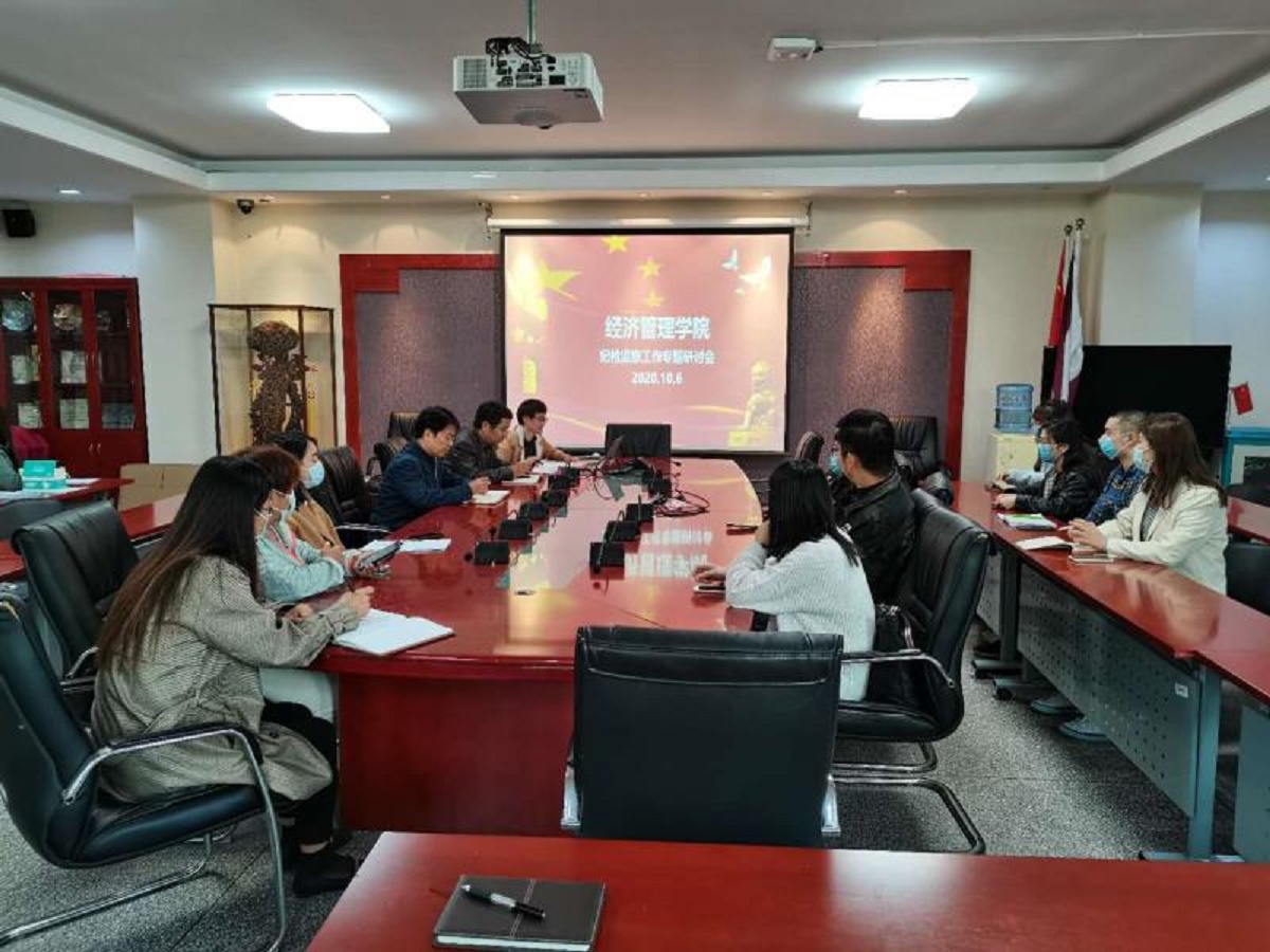 10月6日下午,经济管理学院在励学楼201会议室召开学院纪检监察工作研讨会,学院党委书记王伟宾、副书记赵洁,党委纪检委员王志亮、党风廉政特约监督员王丽新、各教工支部和学生支部的纪检委员参加了本次会议。赵洁副书记首先传达了学校纪检监察工作的总体要求,强调要不断加强自身理论学习,强化学习效果,将学院党委在学校第三轮巡察过程中暴露出的问题逐一分析并真抓实改。要时刻牢记作风建设,营造风清气正的良好政治生态。...