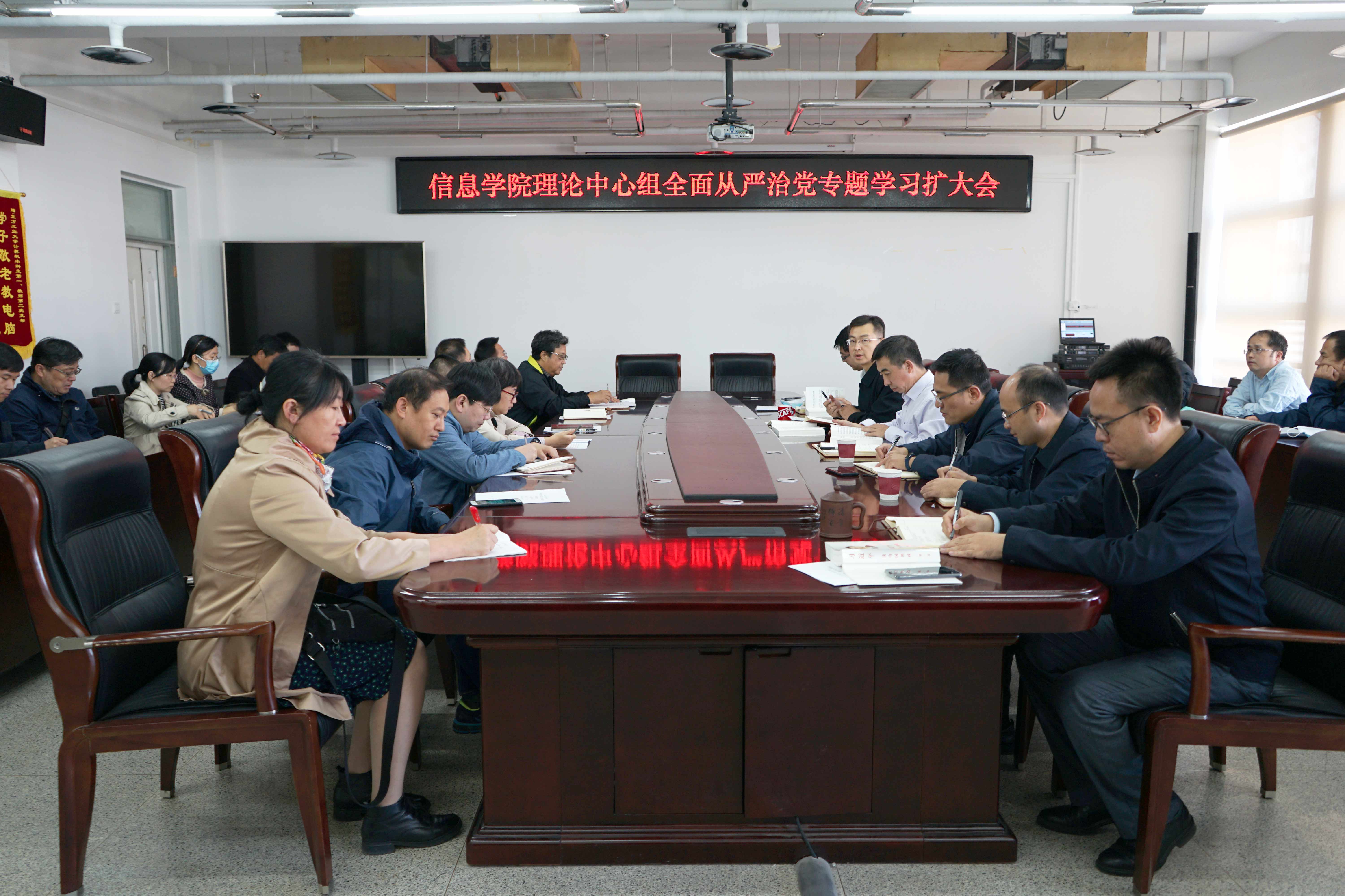 10月12日,信息学院党委理论学习中心组成员在瀚学楼1014会议室召开学院理论中心组集体学习(扩大)会,专题学习《习近平谈治国理政》第三卷第19专题“不忘初心、牢记使命,把党的自我革命推向深入”中关于“全面从严治党”的系列文章。学校党委理论学习中心组巡听工作小组成员列席会议。会议由学院党委书记王月海主持。学院党委书记王月海、院长马礼、副院长宋威分别领学了《重整行装再出发,以永远在路上的执着把全面从严治党引向...