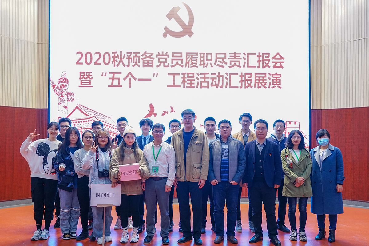 为综合考察预备党员履职尽责情况,验收学院“五个一”工程实施成效,11月13日下午,信息学院在文化会堂召开2020年秋季学期预备党员履职尽责情况汇报会暨“五个一”工程活动汇报展演。学院党委副书记赵帅、各学生党支部书记、学生党建中心成员、学院全体预备党员及发展对象参加了汇报会。汇报会采取综合答辩和情景考察相结合的考核方式,通过PPT答辩、微话剧、情景再现等形式集中展示预备党员在一年预备期内完成“五个一”工程的...