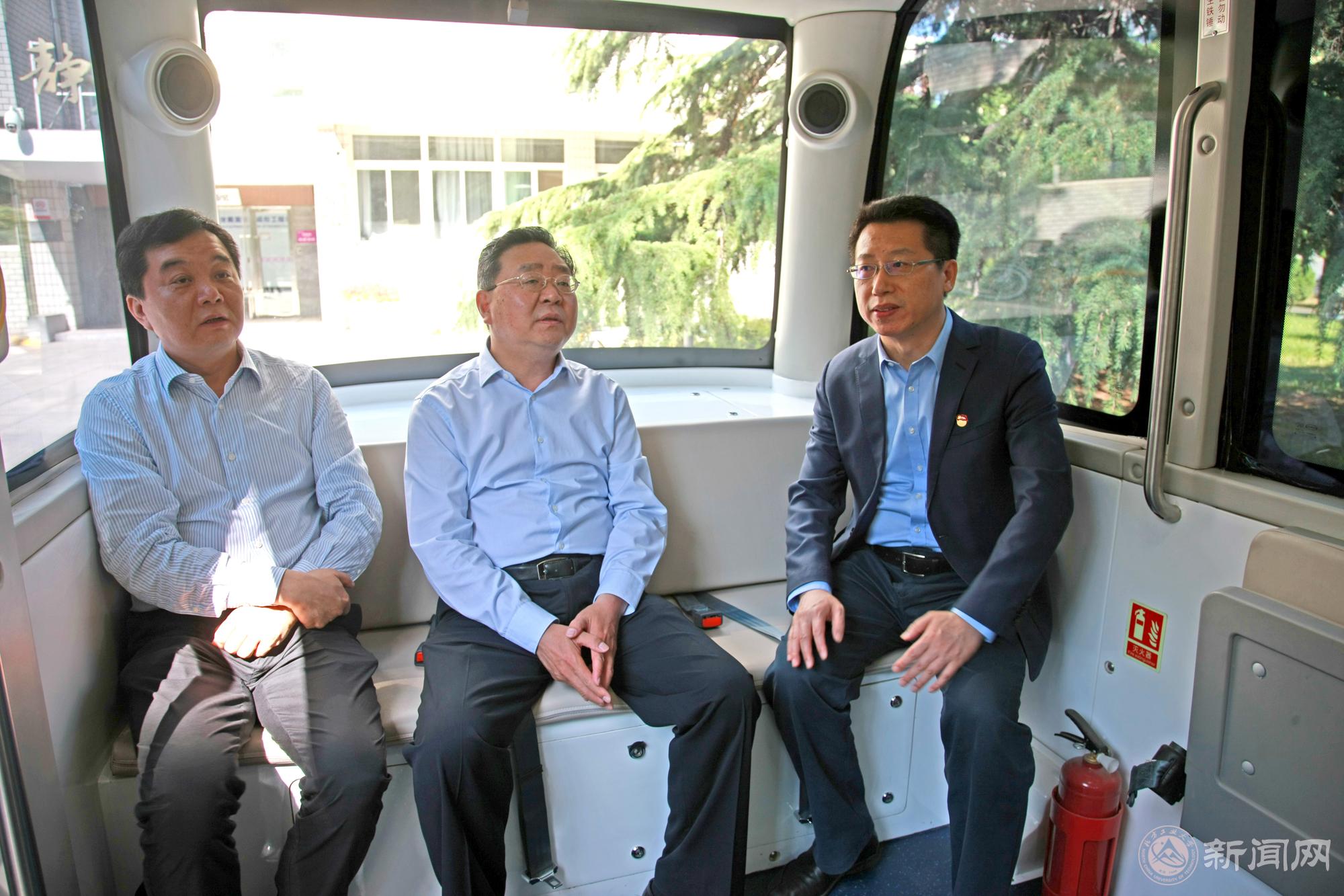 随后,常卫一行实地体验学校在5G智能网联车研究应用方面的最新成果,乘坐由BV伟德官方网站高新技术创新研究院自主研发的5G智能网联车参观校园。车上,他不时与-闫江、李万林进行交流,了解网联车研发过程、应用场景及技术优势。