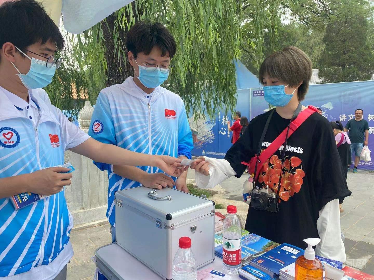 在八大处城市志愿者服务站,学生志愿者们通过开展红色故事宣讲的形式,向市民群众讲述党史故事《八大处的红色电波》,赓续红色基因、传承红色血脉。正值端午节假期,志愿者们还与游客一起包粽子、话民俗,弘扬中华优秀传统文化,营造浓厚的节日氛围。