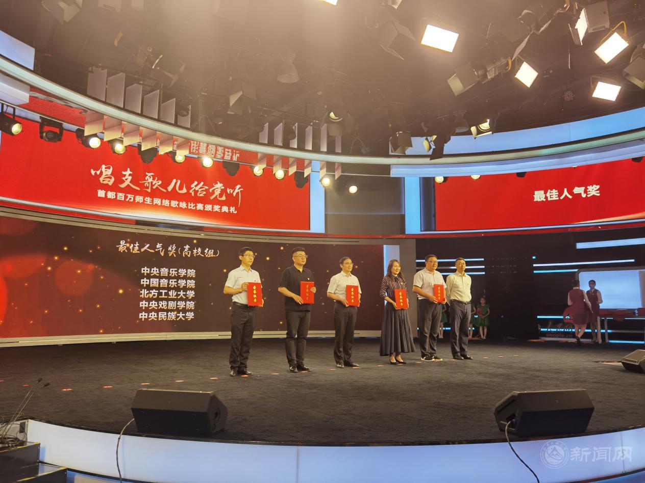 6月23日,由北京市委教育工委、北京市教委举办的“唱支歌儿给党听”首都百万师生网络歌咏比赛颁奖典礼在人民日报社新媒体大厦1号演播厅举行。伟德官网报送的MV作品《没有共产党就没有新中国》荣获“最佳人气奖”并获评大赛二等奖。