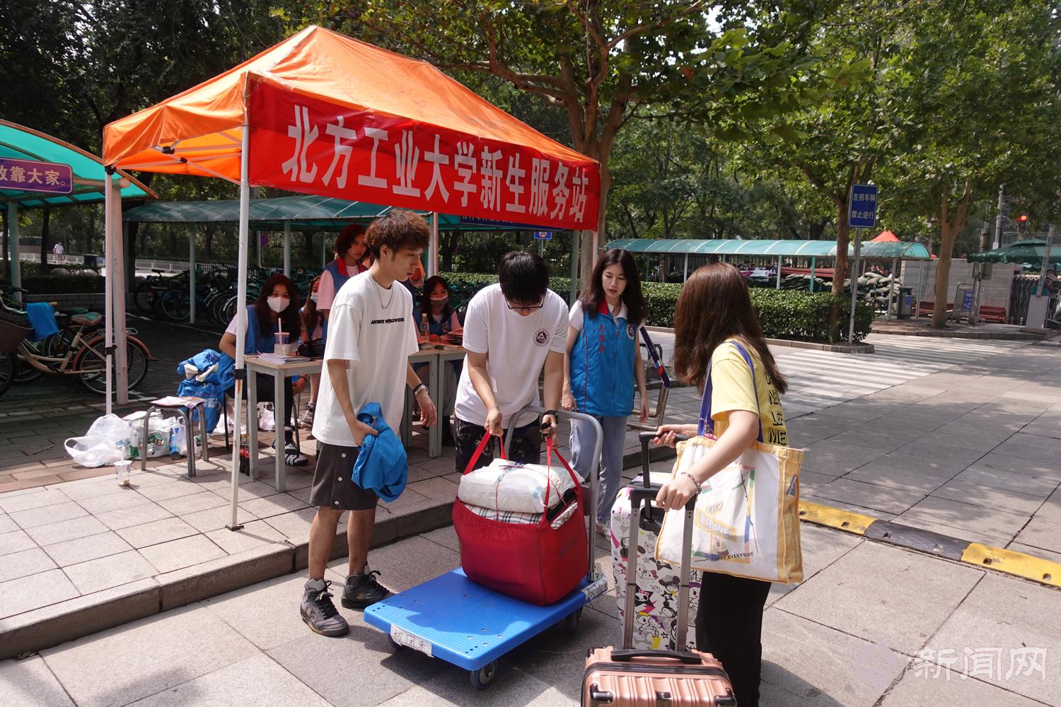 上午8点开始,校门前开始热闹起来,学生和家长陆续来到学校报到。安稳部工作人员认真做好入校检测和秩序维护,新生与老生从不同通道有序入校;校南门、北门和西门专门设置志愿服务点,帮助搬运行李、指引报到流程;为了方便驾车的学生家长入校,学校科学设计单向车道,家长车辆直接将学生送至小操场的报到点后迅速离校;学校还安排了从学校至金鼎公寓的摆渡车,全天往返为学生提供服务。