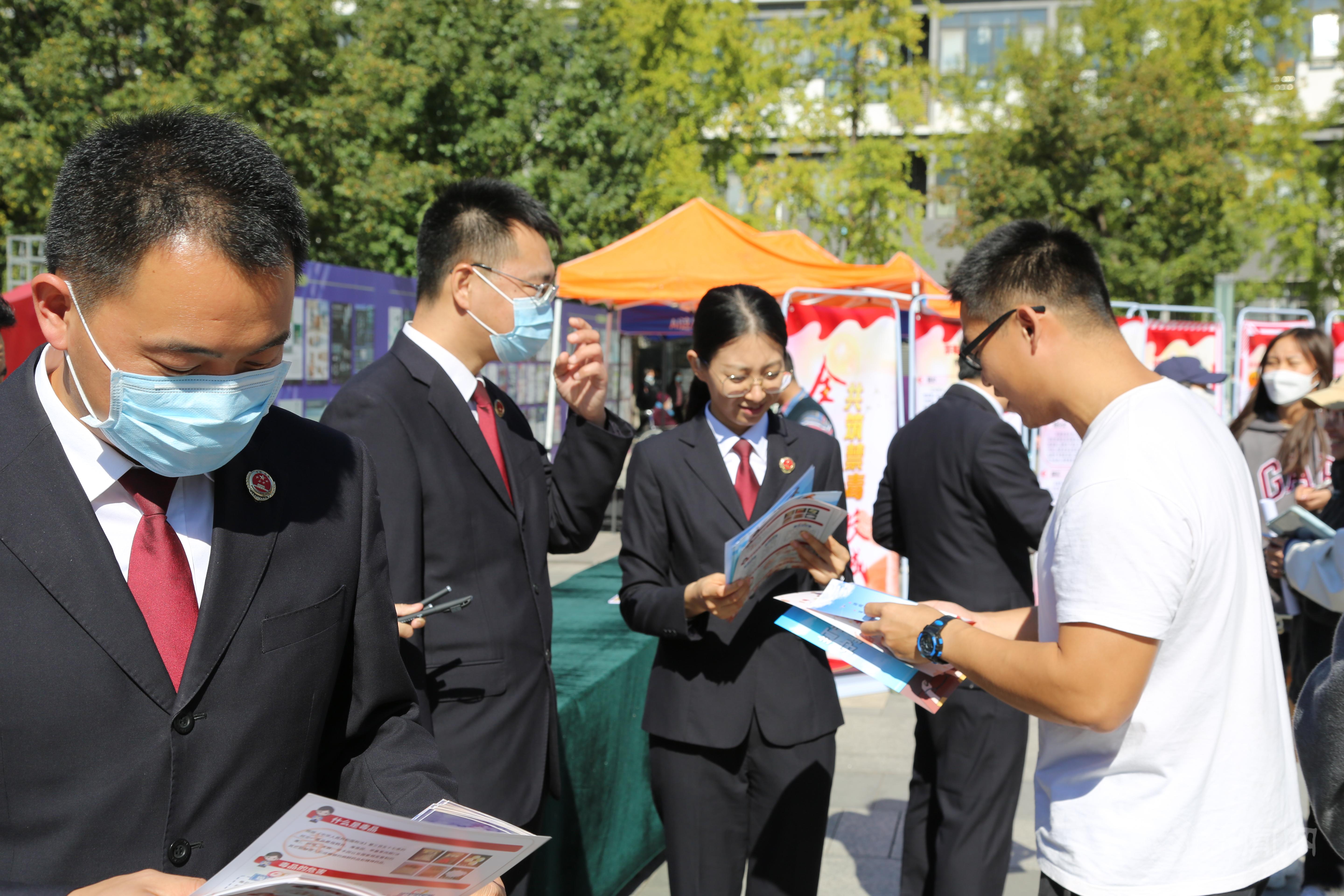 在毓秀广场,宣讲组与广大师生面对面,发放宣传资料,讲解展板内容,开展有奖竞答,吸引在场师生踊跃参加。针对大家关心的代购、海淘等相关法律问题,检察官进行了详细的讲解,明确法律界限,宣讲法律规定,受到了师生的热烈欢迎。
