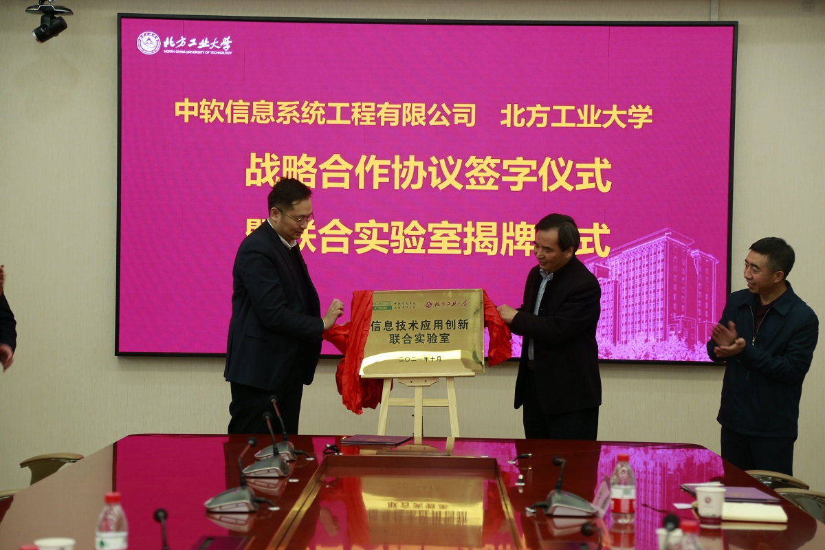 11月1日,中软信息系统工程有限公司与BV伟德官方网站战略合作协议签字仪式暨信息技术应用创新联合实验室揭牌仪式在伟德官网敦品楼342会议室举行。中国软件与技术服务股份有限公司副总经理吴晶、中软信息系统工程有限公司执行董事闫兴华,BV伟德官方网站党委常委、副校长王建稳,党委常委、副校长栗苹出席签约仪式。