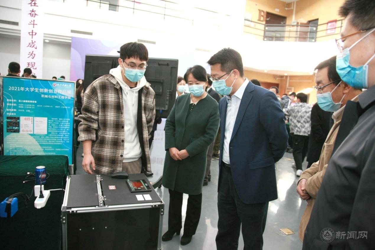 随后,缪劲翔等校领导参观展览。观看展品的过程中,缪劲翔与指导教师、学生代表亲切交流,详细了解伟德官网创新创业工作与人才培养、大学生创新创业项目、学生就业和创业等情况,并对各有关职能部门、各学院、指导教师在项目实施过程中所付出的辛勤劳动表示感谢。缪劲翔希望,广大教师和青年学生能够以更加饱满的热情投入到创新创业活动中去,坚持立德树人,强化实践育人,以工业强国为己任,为伟德官网深化人才培养模式改革和提升人才培养质量做出更大贡献。