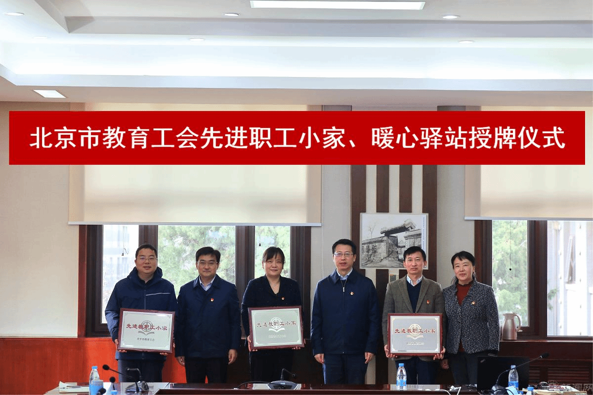 12月10日上午,学校在敦品楼302会议室举行“北京市教育工会先进教职工小家”、“北京工会职工暖心驿站”授牌仪式,校党委书记缪劲翔,党委副书记田红芳,党委常委、纪委书记马春成为2020年、2021年获评“北京市教育工会先进教职工小家”的3个职工小家和9家暖心驿站授牌。