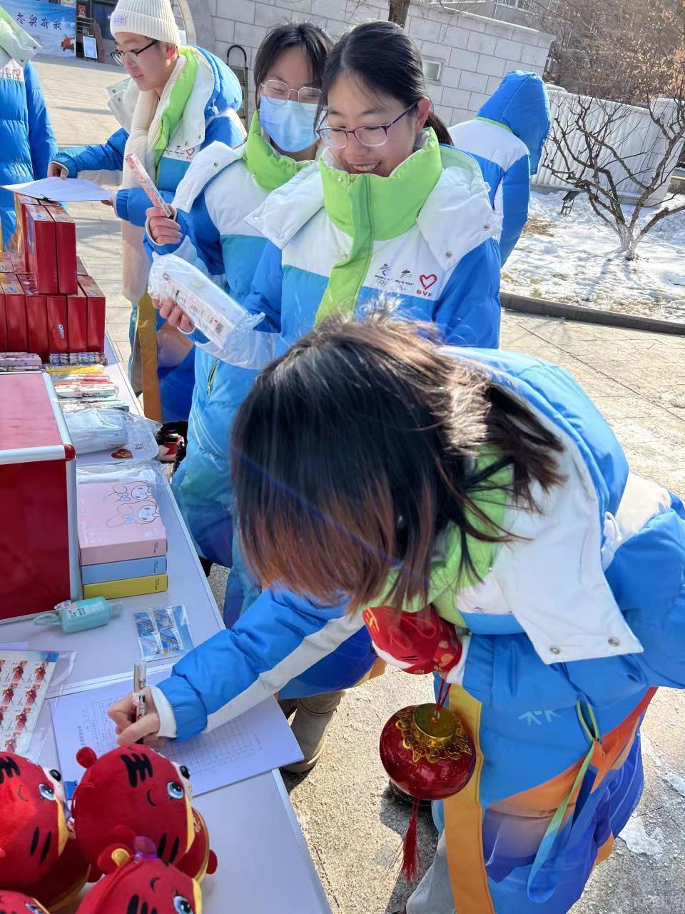 毓秀园中的树枝下、小路旁挂满了火红的灯笼,每个灯笼下挂着彩色的卡片,上面写着具有冬奥特色的趣味灯谜。志愿者们开动脑筋,调动知识储备,争抢着猜灯谜,欢声笑语让毓秀园充满了节日的喜庆,也让志愿者们感受到了家的温暖。