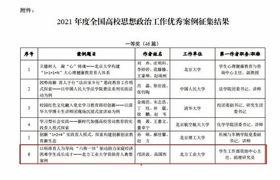 近日,2021年度全国高校思想政治工作优秀案例征集结果发布,伟德官网《以精准育人为导向 “六维一体”驱动助力家庭经济困难学生成长成才——BV伟德官方网站资助育人典型案例》喜获一等奖。
