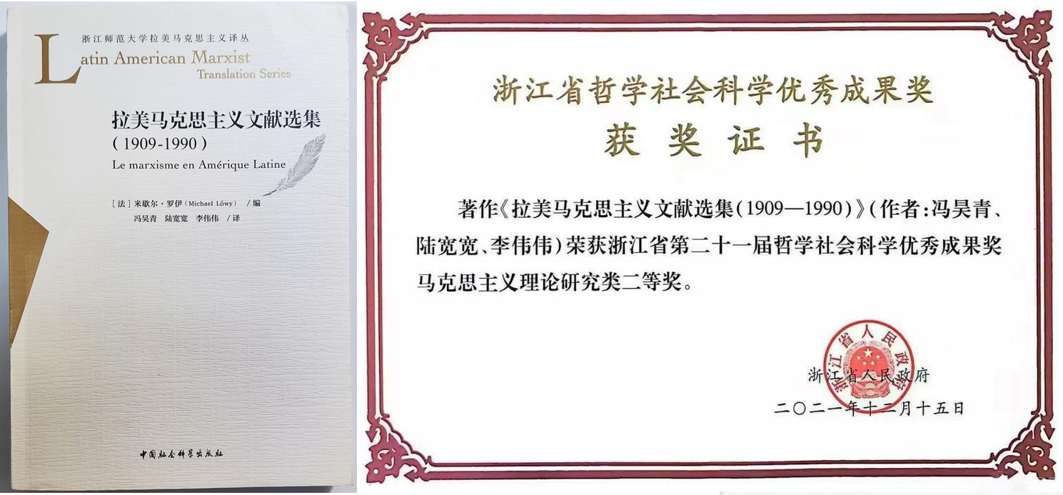 日前,浙江省第二十一届哲学社会科学优秀成果奖颁奖仪式暨第六届浙江省社会科学界学术年会开幕式在杭州举行。伟德官网教师陆宽宽参与翻译的《拉美马克思主义文献选集(1909—1990)》荣获浙江省哲学社会科学优秀成果奖马克思主义理论研究类二等奖。