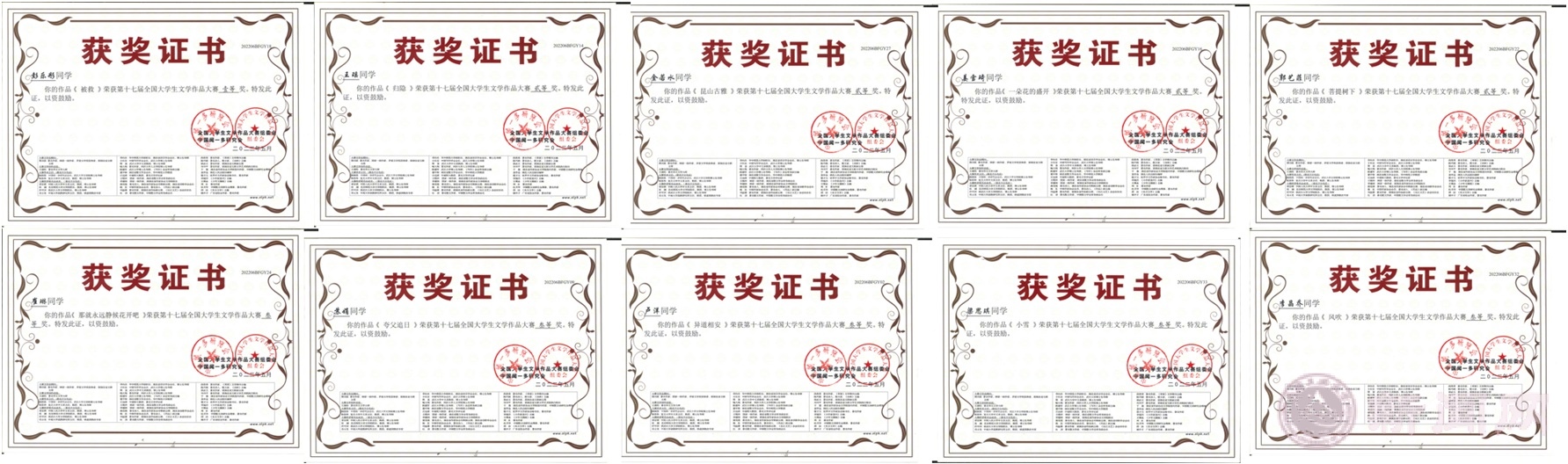 近日,第十七届全国大学生文学作品大赛成绩揭晓,伟德官网文法学院、经管学院十位参赛同学喜获佳绩,其中一等奖1项,二等奖4项,三等奖5项。