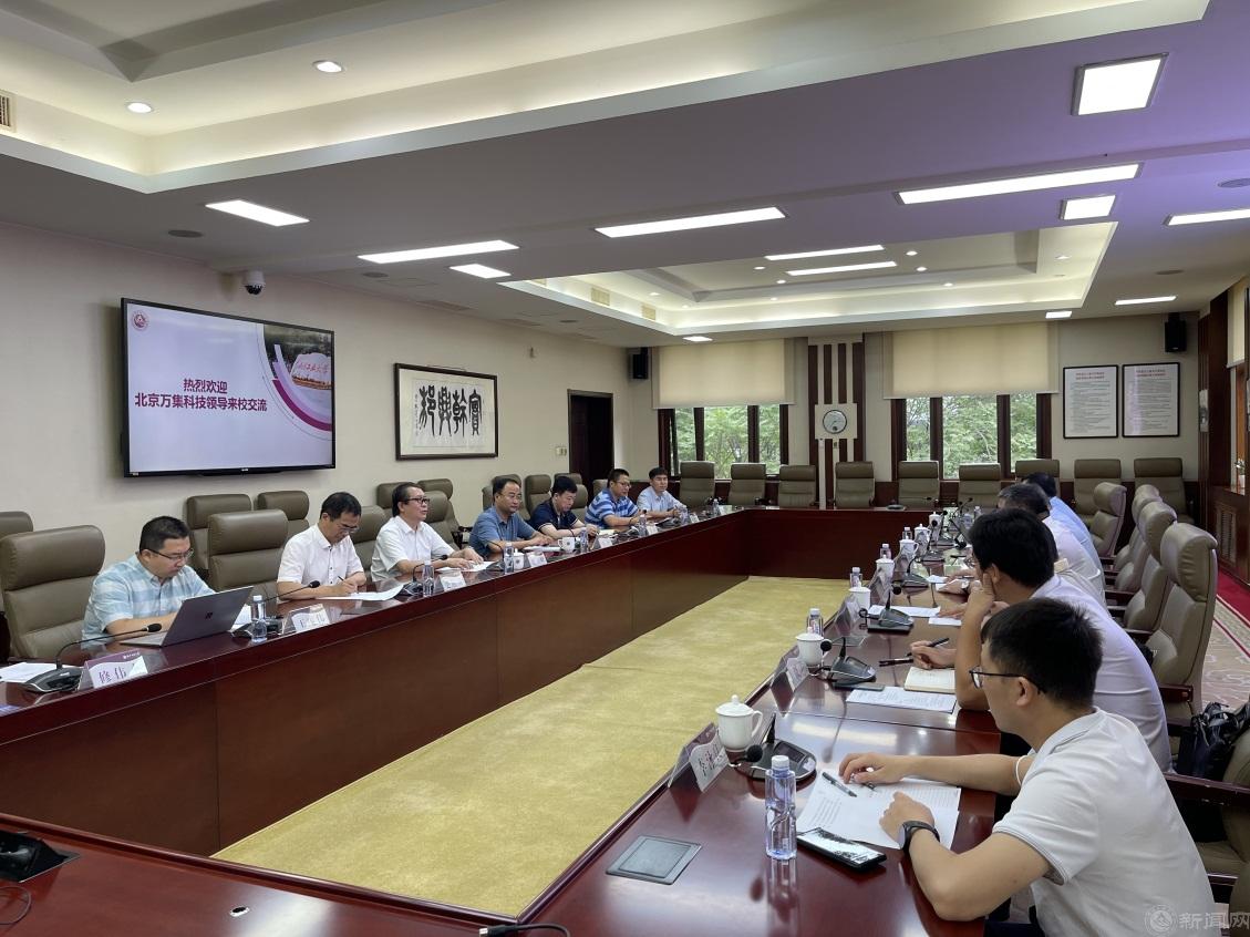 8月8日,北京万集科技股份有限公司翟军董事长等一行7人来伟德官网访问交流,学校党委副书记、校长张立峰,党委常委、副校长王力参加了座谈交流。