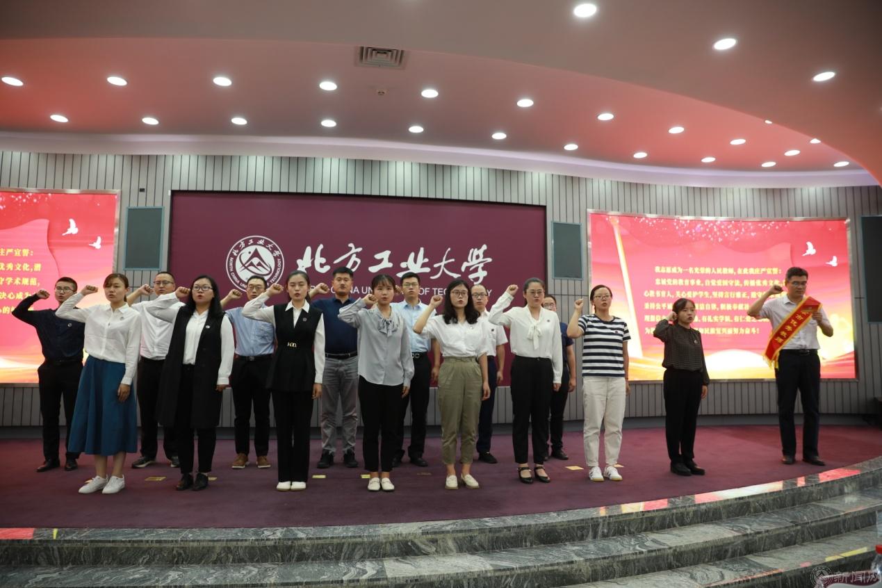 大会举行2022年新上岗教师集体宣誓仪式,在北京市优秀教师、北京青年教学名师、马克思主义学院教师张茂林带领下,新教师庄严宣誓。铮铮誓言展示了新教师坚守立德树人初心使命,为党育人、为国育才的信念与决心。
