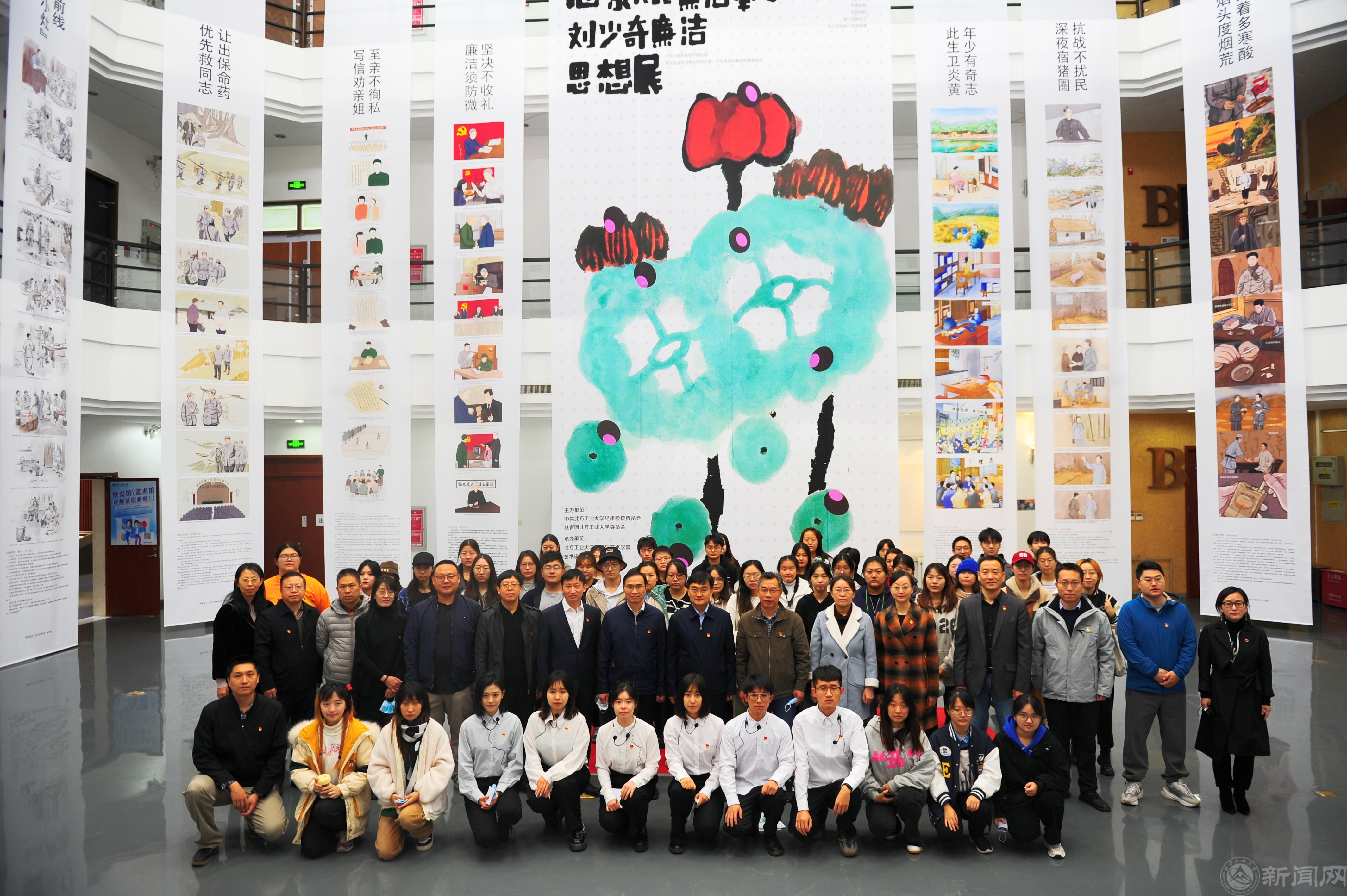 本次展览以习近平总书记在纪念刘少奇同志诞辰120周年座谈会上的重要讲话为指导,由艺术设计系教工党支部负责策划并编辑创作文案,精选刘少奇同志廉洁故事19 篇,设计学研究生党支部党员手绘插画近200 幅,视传20-1、20-2班学生创作设计海报30幅,集中展现了刘少奇同志“心系人民、廉洁奉公”廉洁思想和感人事迹。
