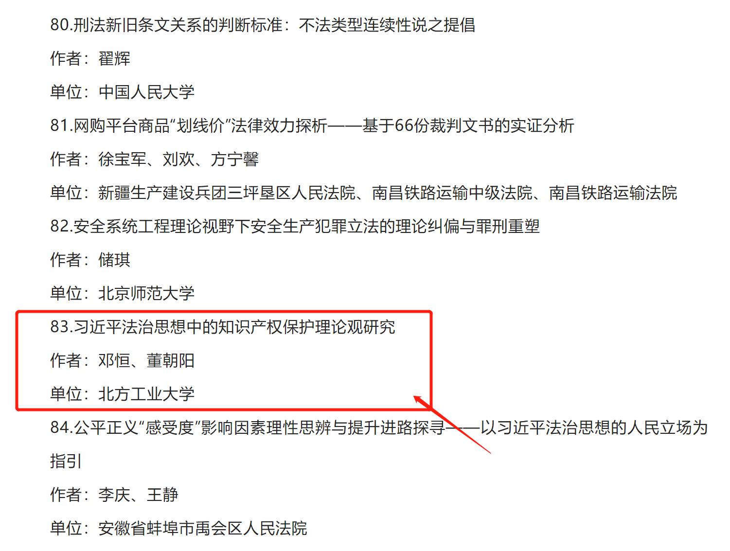 12月2日,首届中国应用法学高峰论坛征文暨2022年度全国优秀应用法学论文征文评选结果公布。伟德官网文法学院邓恒副教授及其研究生董朝阳合署的研究成果《习近平法治思想中的知识产权保护理论观研究》荣获三等奖。