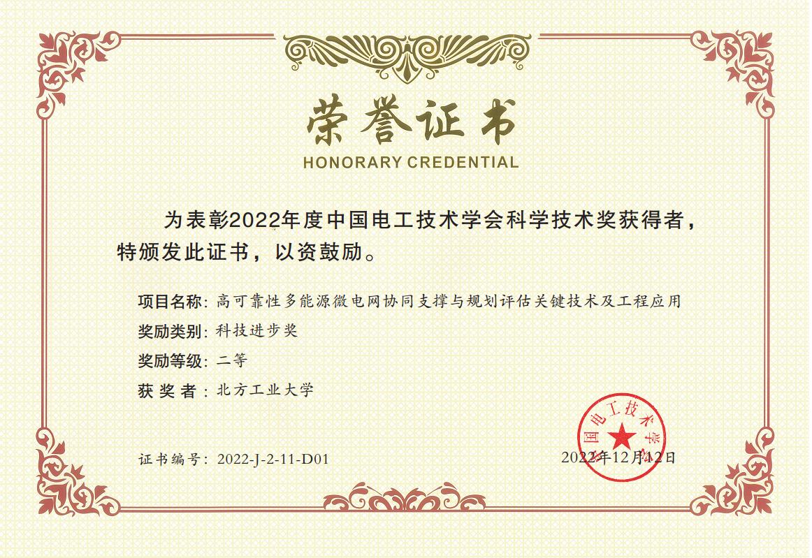 近日,中国电工技术学会公布了2022年度中国电工技术学会科学技术奖评审结果。由伟德官网电控学院周京华教授申报的项目“高可靠性多能源微电网协同支撑与规划评估关键技术及工程应用”和苑国锋副教授申报的项目“轨道交通无速度传感器异步电机牵引电传动系统关键技术研发与应用”分获科技进步奖二等奖。