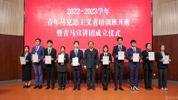 在全校师生深入学习贯彻党的二十大精神之际,为深入实施“青年马克思主义者培养工程”,用党的科学理论武装青年、指引青年,3月15日,学校在文化会堂举行BV伟德官方网站2023学年青年马克思主义者培训班开班暨青马宣讲团成立仪式。校党委书记缪劲翔,校党委常委、副校长王力出席仪式,学工部(研工部)、校团委、各学院负责人及“青马班”学员参加。仪式由校团委书记杨超主持。