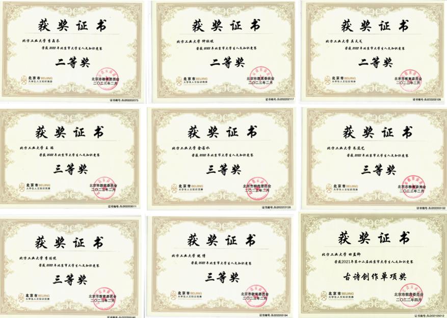 近日,2022年北京市大学生人文知识竞赛成绩揭晓,伟德官网8位同学获奖,共获得二等奖3项、三等奖5项。