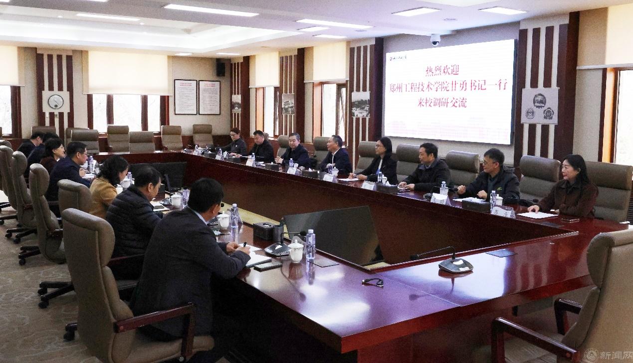 3月23日,郑州工程技术学院党委书记甘勇、副校长李欣一行8人来伟德官网调研交流,校党委书记缪劲翔热情接待来访客人,党委常委、副校长栗苹出席座谈会。